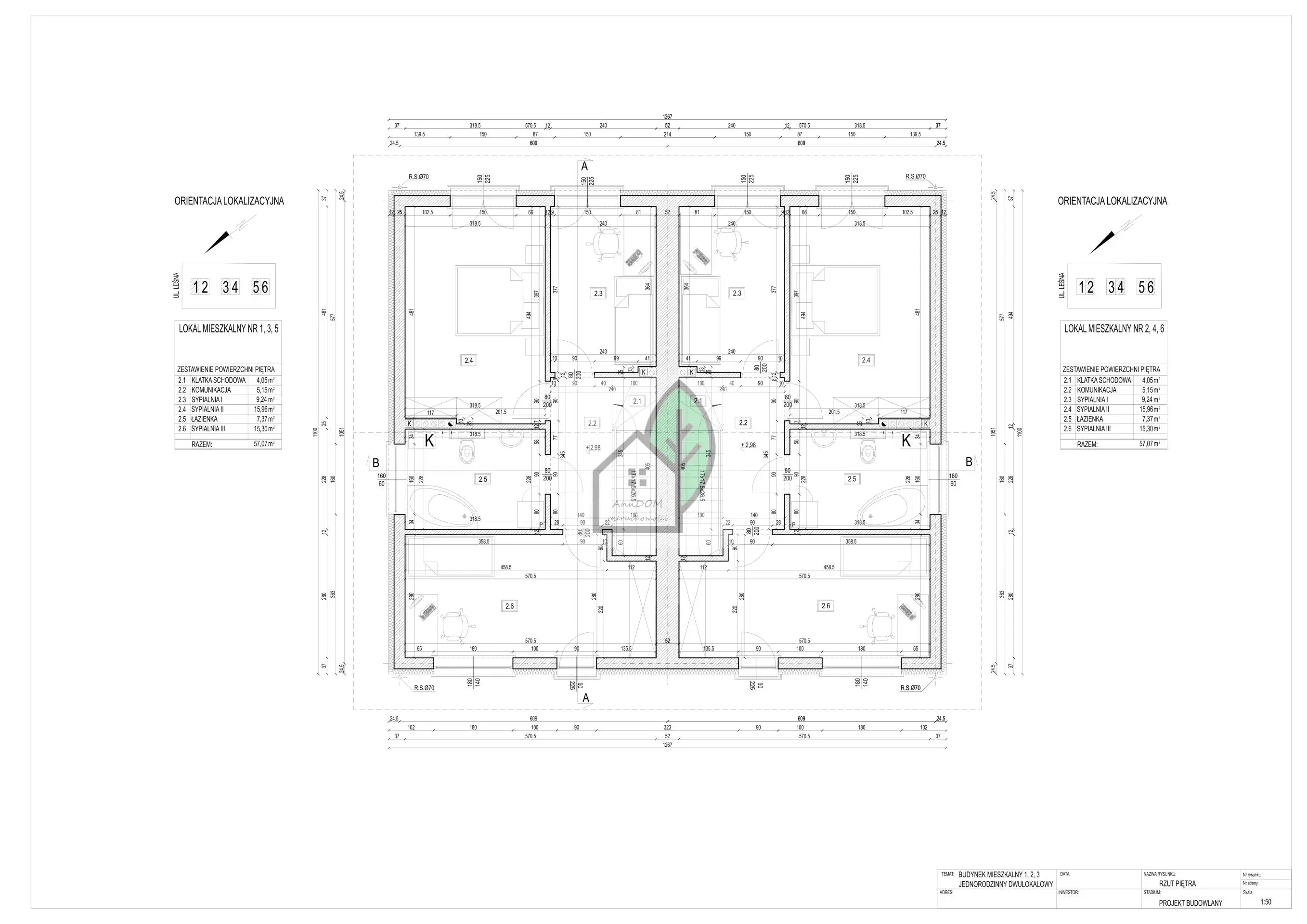 Piętro I (57.07 m²):