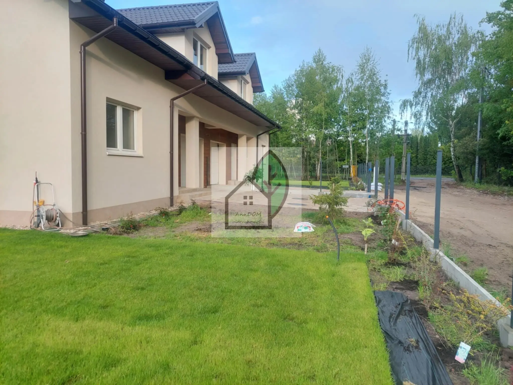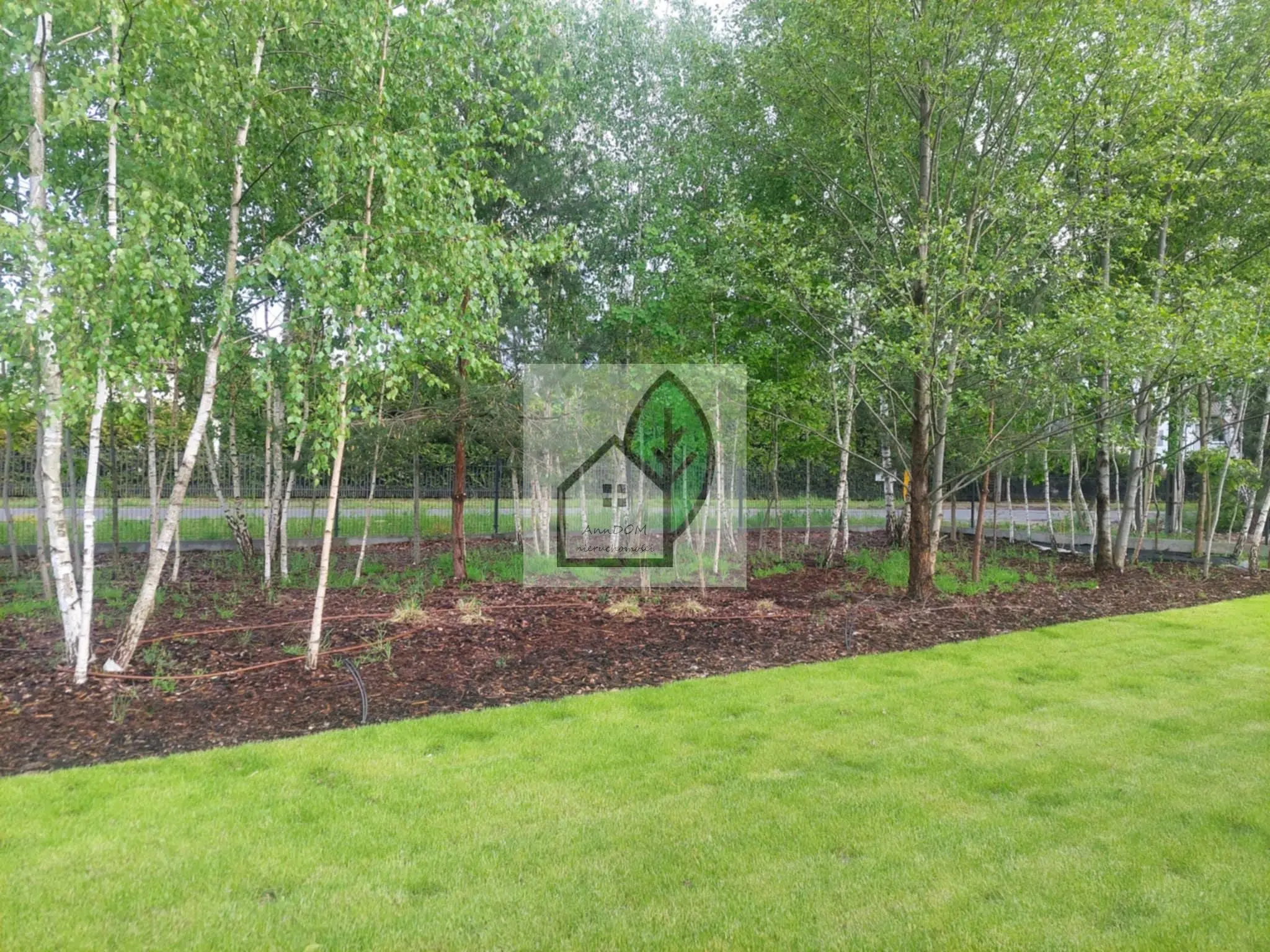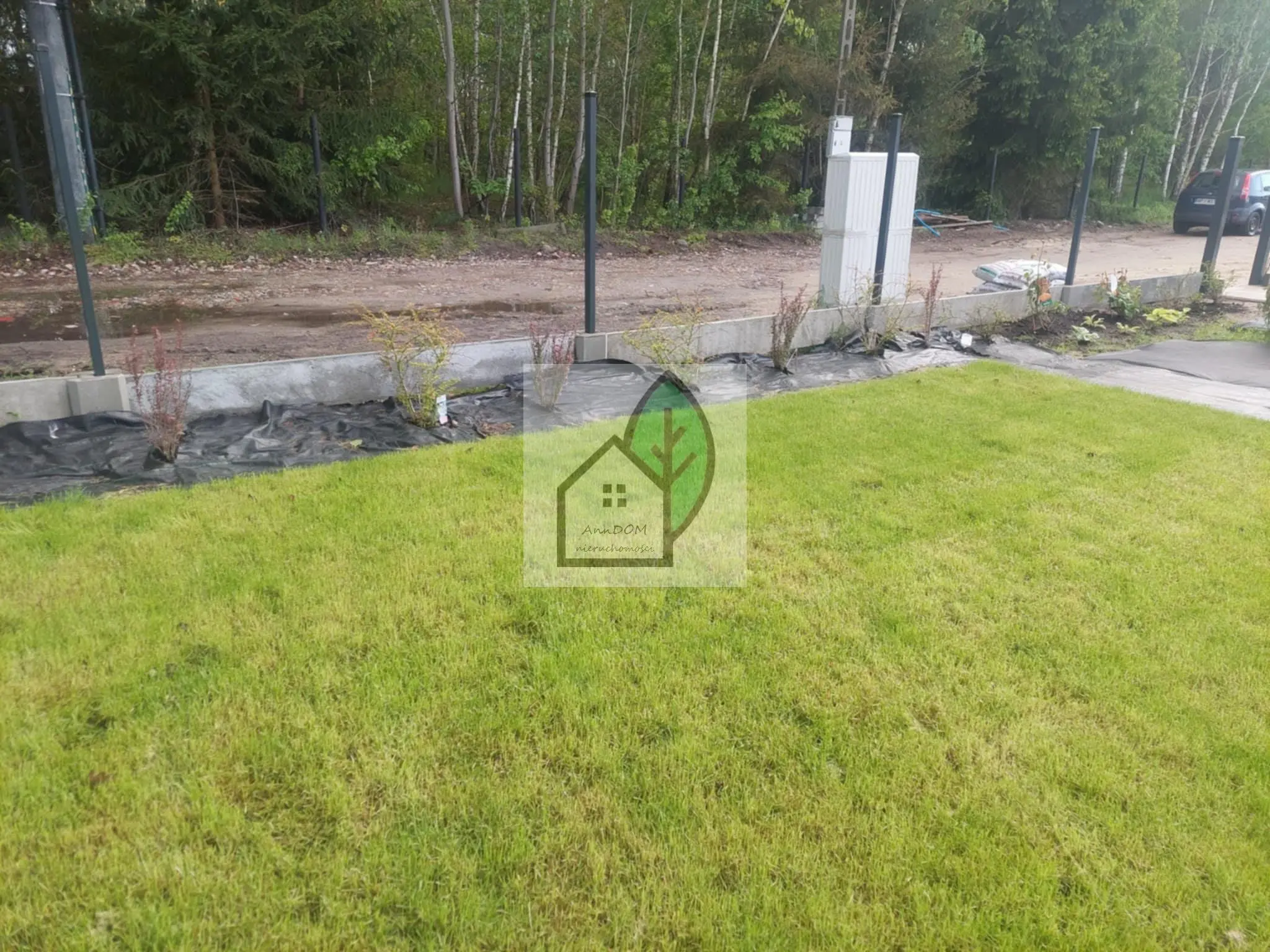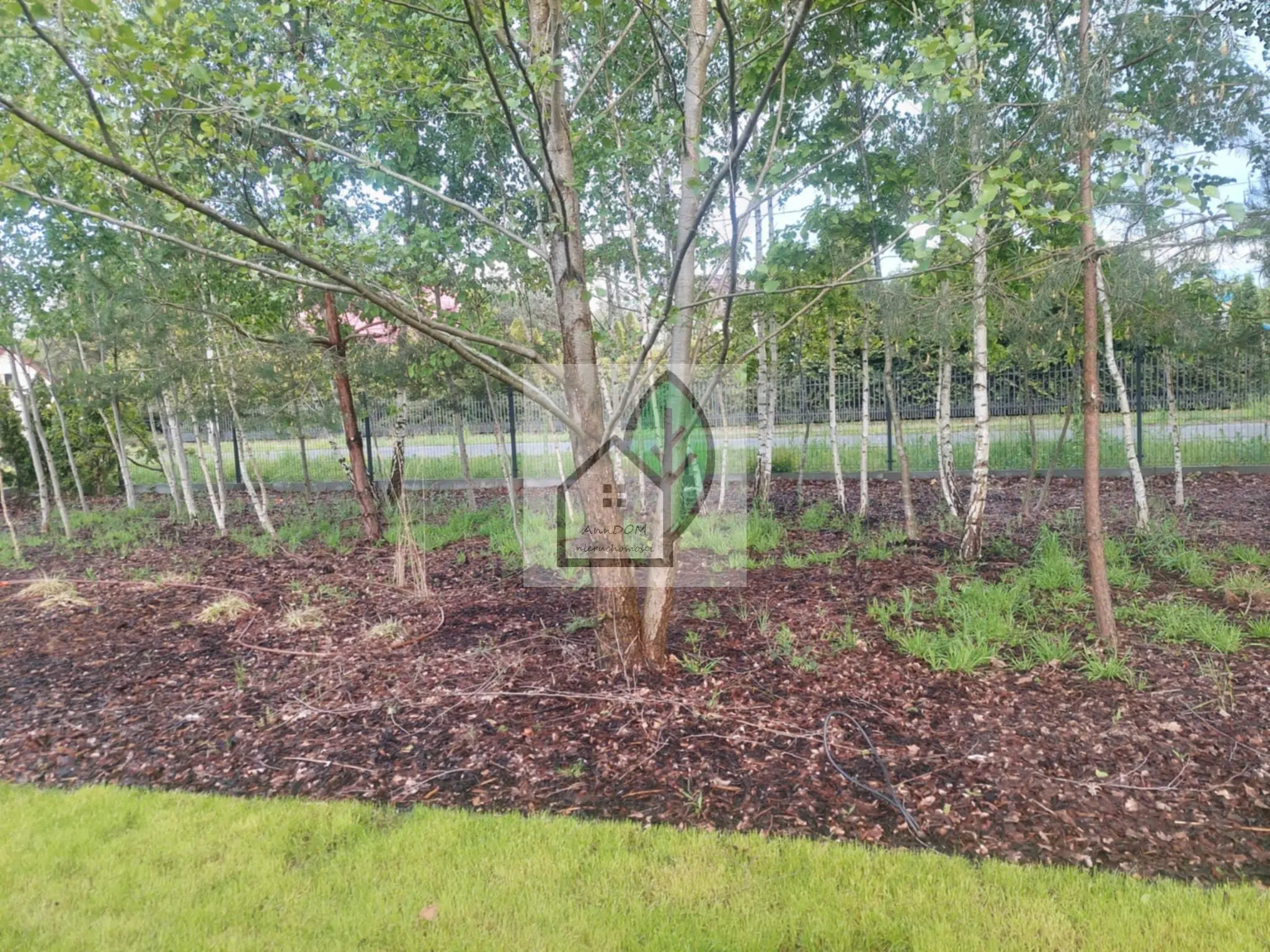 W pełni zagospodarowana działka i ogrodzona działka od strony ulicy brzozowy lasek dookoła domu wyłożona trawa z rolki z tyłu od sąsiada posadzone krzewy laurowiśnie!!